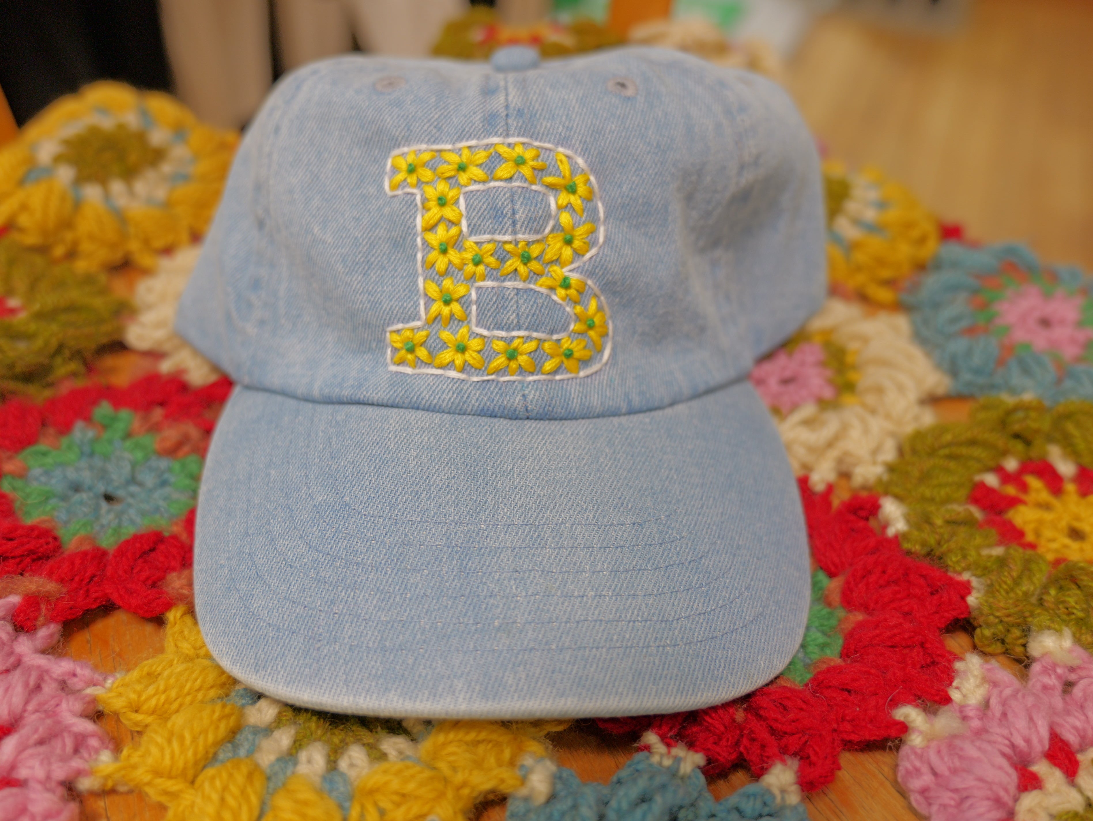 黄色いお花のデニムキャップ【手刺繍】